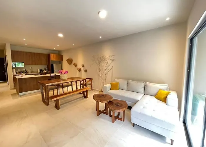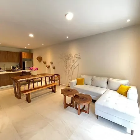 Con vistas al jardín, Departamento Mayamor 3 Bdr, Selvanova Playa del Carmen, un apartamento de 120 m^2, se encuentra a una distancia de 4 km del Terminal marítima de Playa del Carmen en Playa del Carmen. Este apartamento ofrece a los huéspedes Wi-Fi y un jardín privado con piscina.